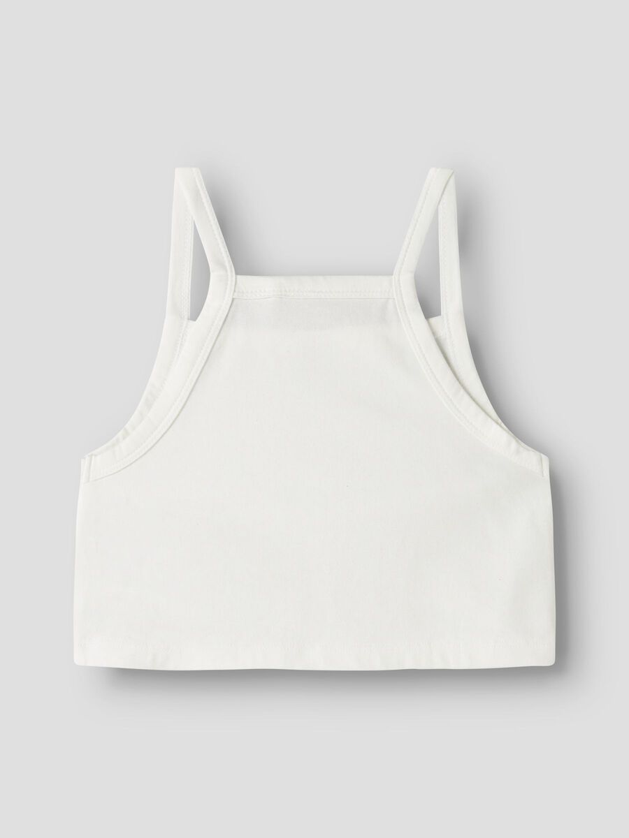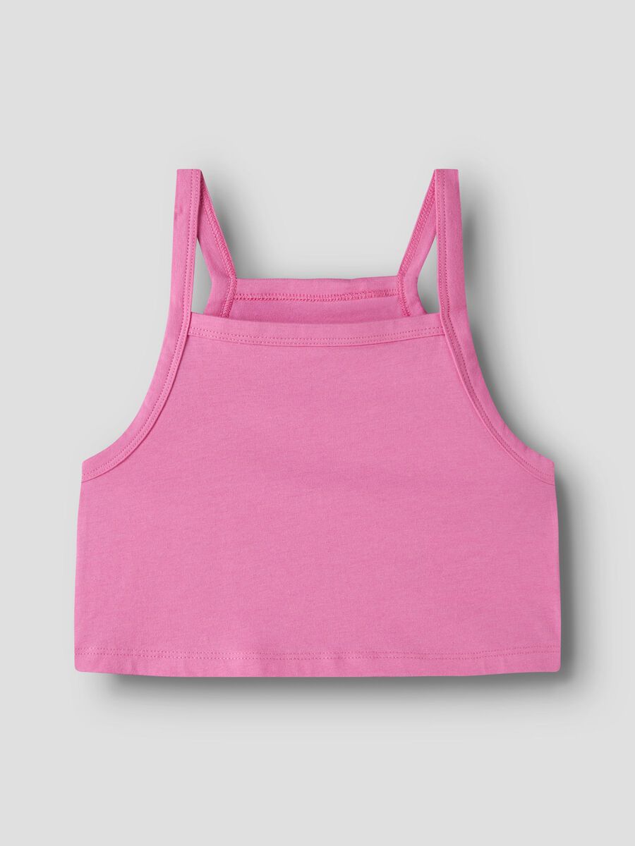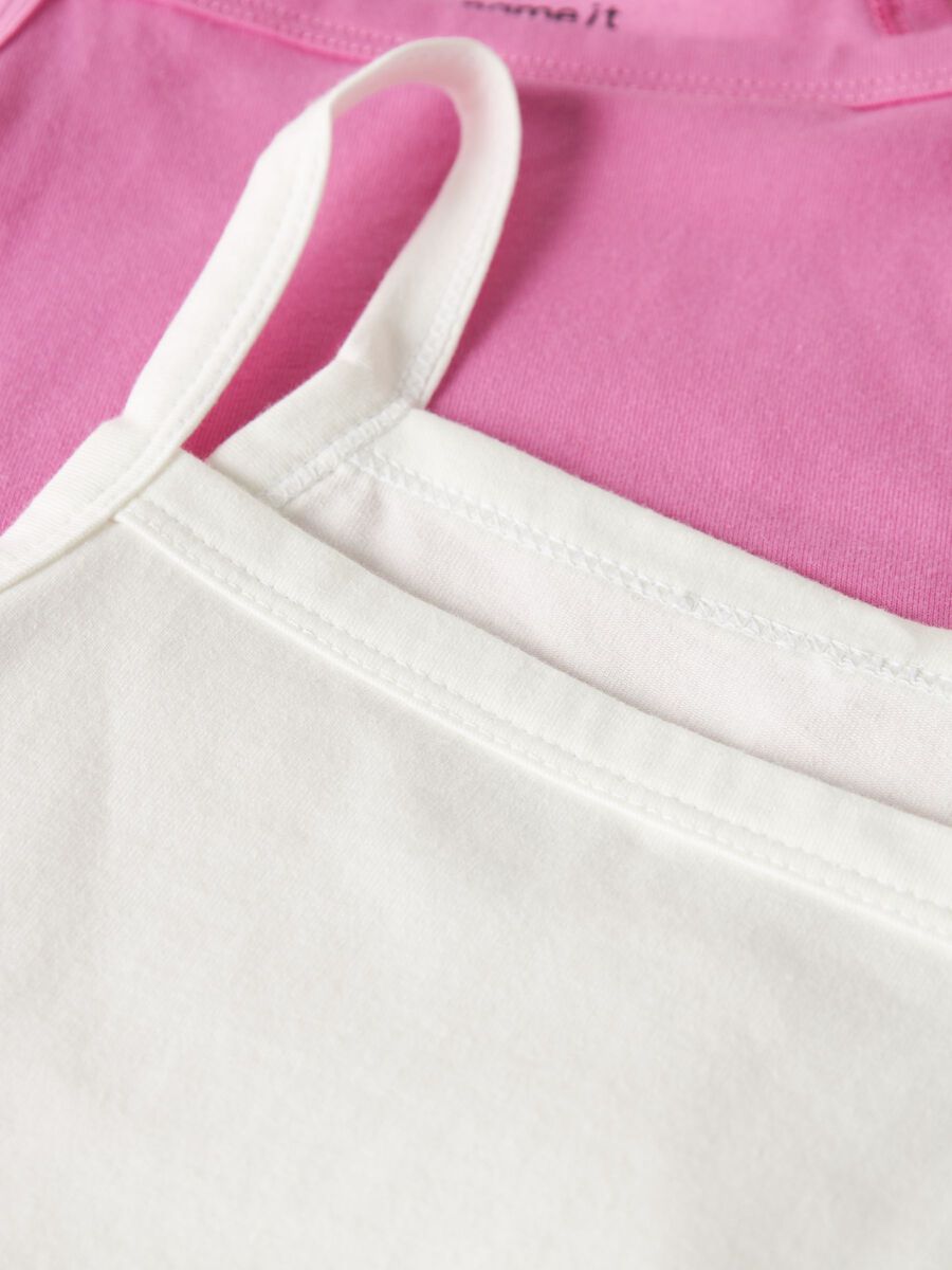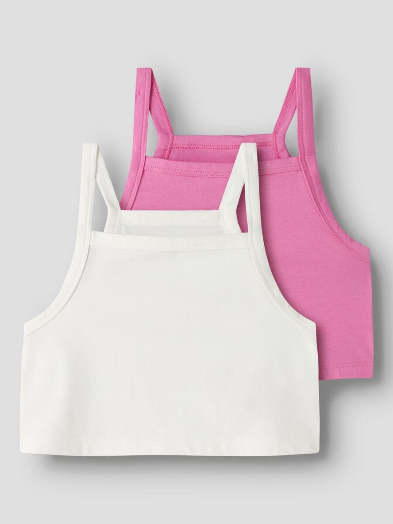 Crop Top σετ των 2 τεμαχίων σε λευκή και ροζ απόχρωση της εταιρείας Name it, αμάνικο, τετράγωνη λαιμόκοψη, στενή γραμμή.