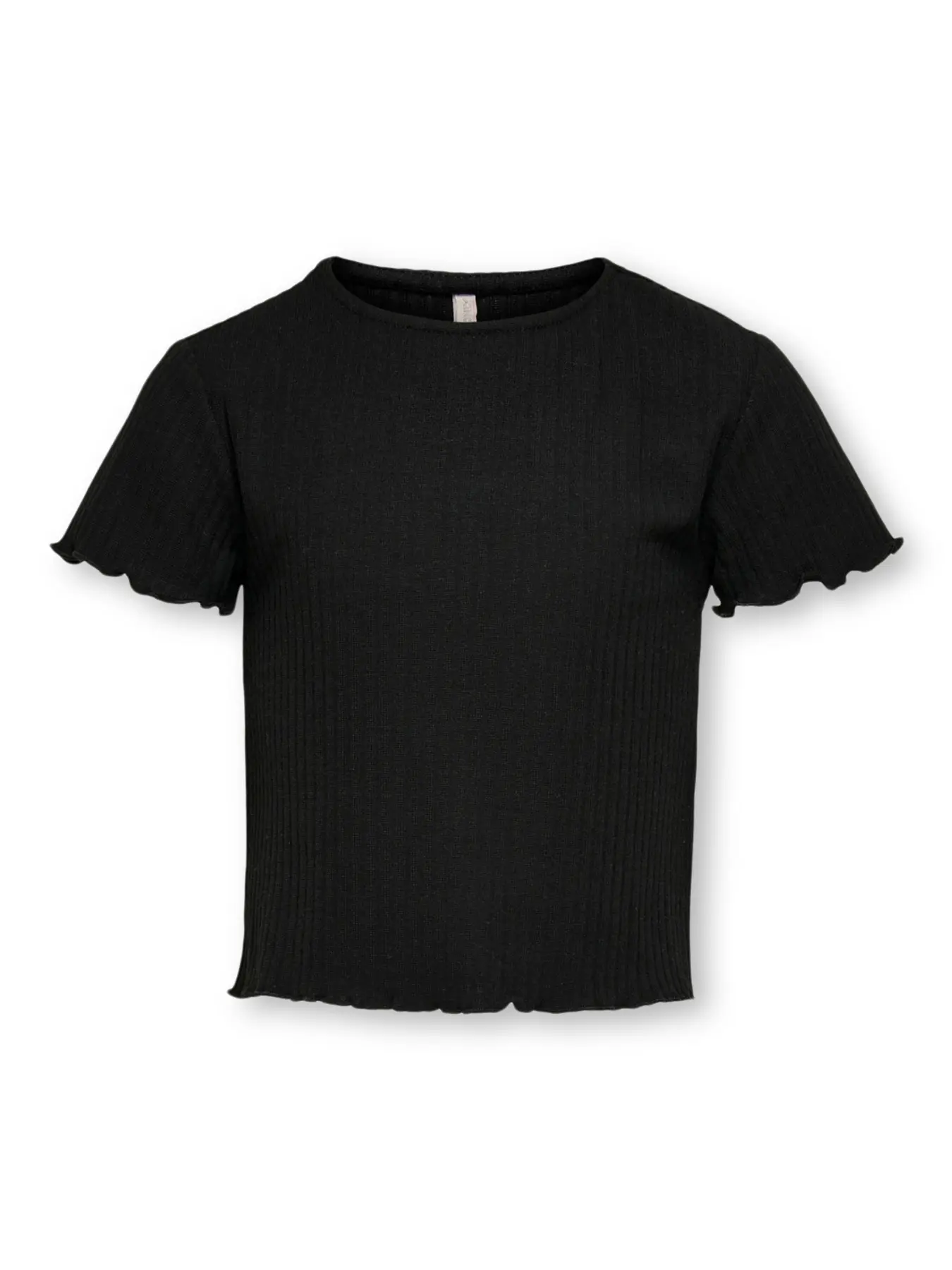 Μπλούζα crop κοντομάνικη σε μαύρη απόχρωση της εταιρείας Only, σε ίσια γραμμή,