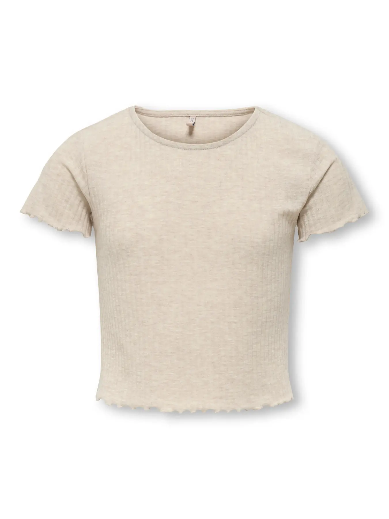 Μπλούζα crop κοντομάνικη σε μπεζ απόχρωση της εταιρείας Only, σε ίσια γραμμή,