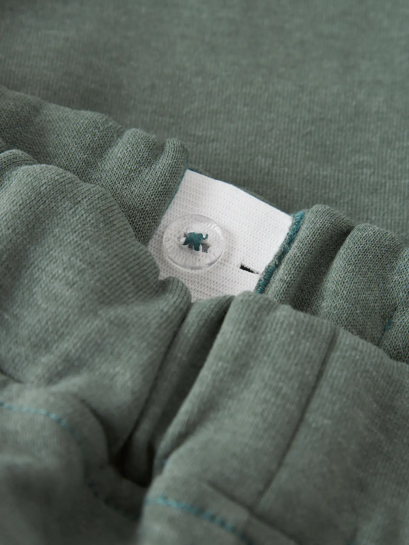Φόρμα σε χακί απόχρωση της εταιρείας Name it, ρυθμιζόμενη ελαστική μέση, λειτουργικές πλαϊνές τσέπες, βουρτσισμένη εσωτερική πλευρά.