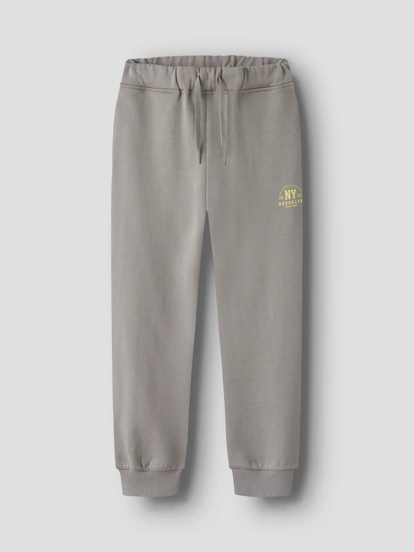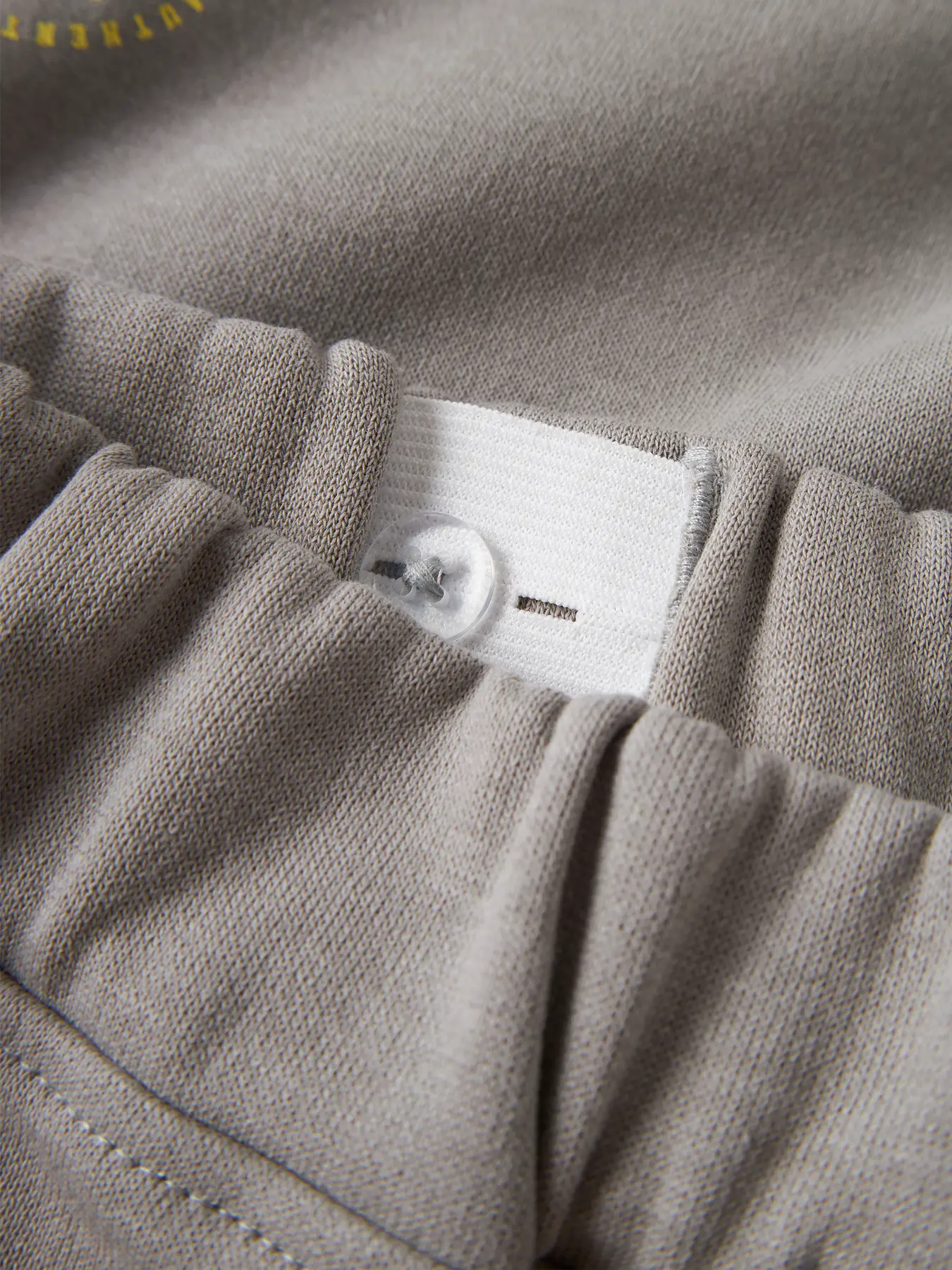 Φόρμα σε γκρι απόχρωση της εταιρείας Name it, ρυθμιζόμενη ελαστική μέση, λειτουργικές πλαϊνές τσέπες, βουρτσισμένη εσωτερική πλευρά.