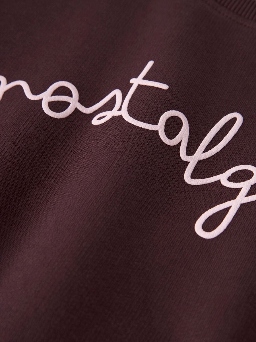 Φούτερ σε καφέ απόχρωση της εταιρείας Name it, τύπωμα μπροστά, άνετη εφαρμογή, βουρτσισμένο εσωτερικά.