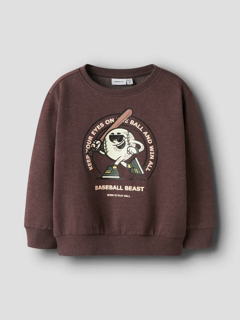Φούτερ σε καφέ απόχρωση της εταιρείας Name it, τύπωμα μπροστά, κανονική εφαρμογή.