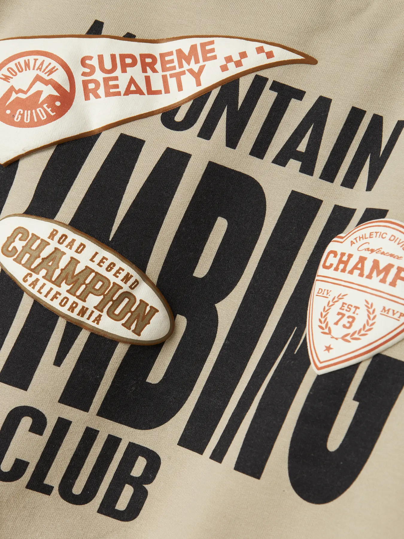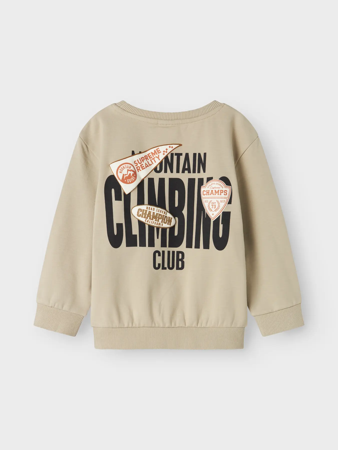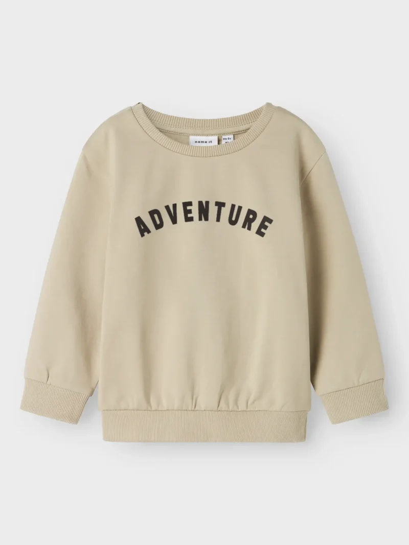 Φούτερ σε μπεζ απόχρωση της εταιρείας Name it, μικρό τύπωμα στο στήθος και μεγάλο στη πλάτη, βουρτσισμένο ύφασμα εσωτερικά, άνετη εφαρμογή, στρογγυλή λαιμόκοψη.