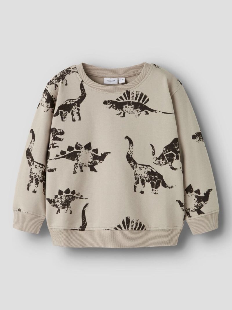Φούτερ σε μπεζ απόχρωση της εταιρείας Name it, τύπωμα σε όλη την επιφάνεια, κανονική εφαρμογή.