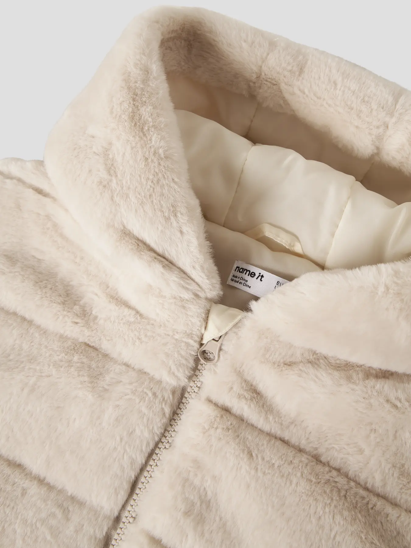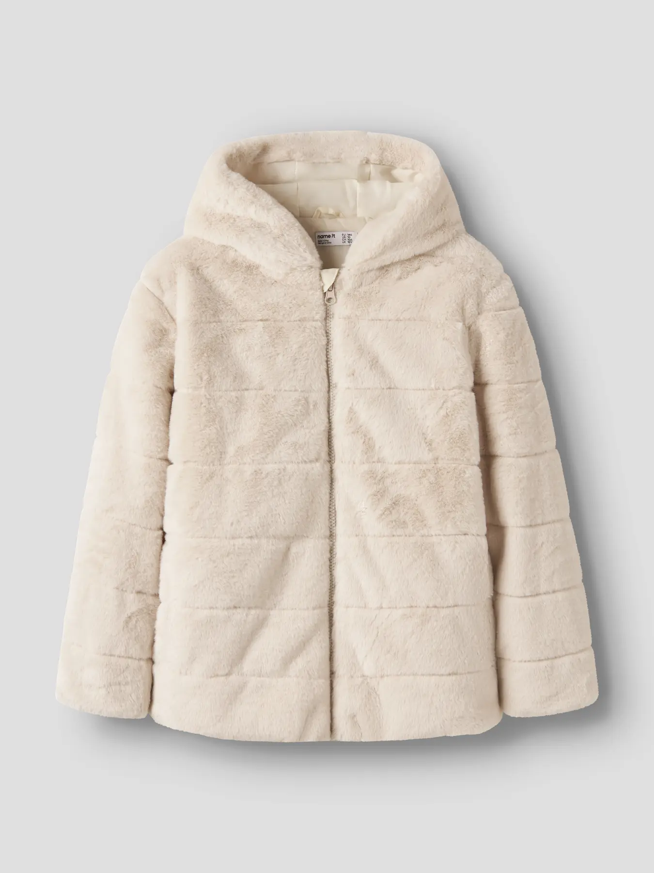 Γούνα σε μπεζ απόχρωση της εταιρείας Name it, μη αποσπώμενη κουκούλα, λειτουργικές τσέπες.