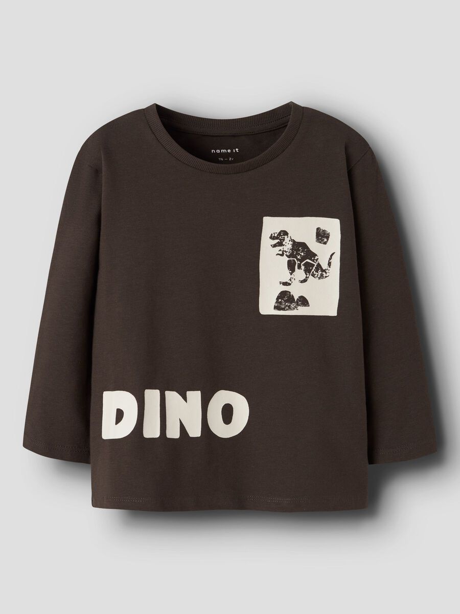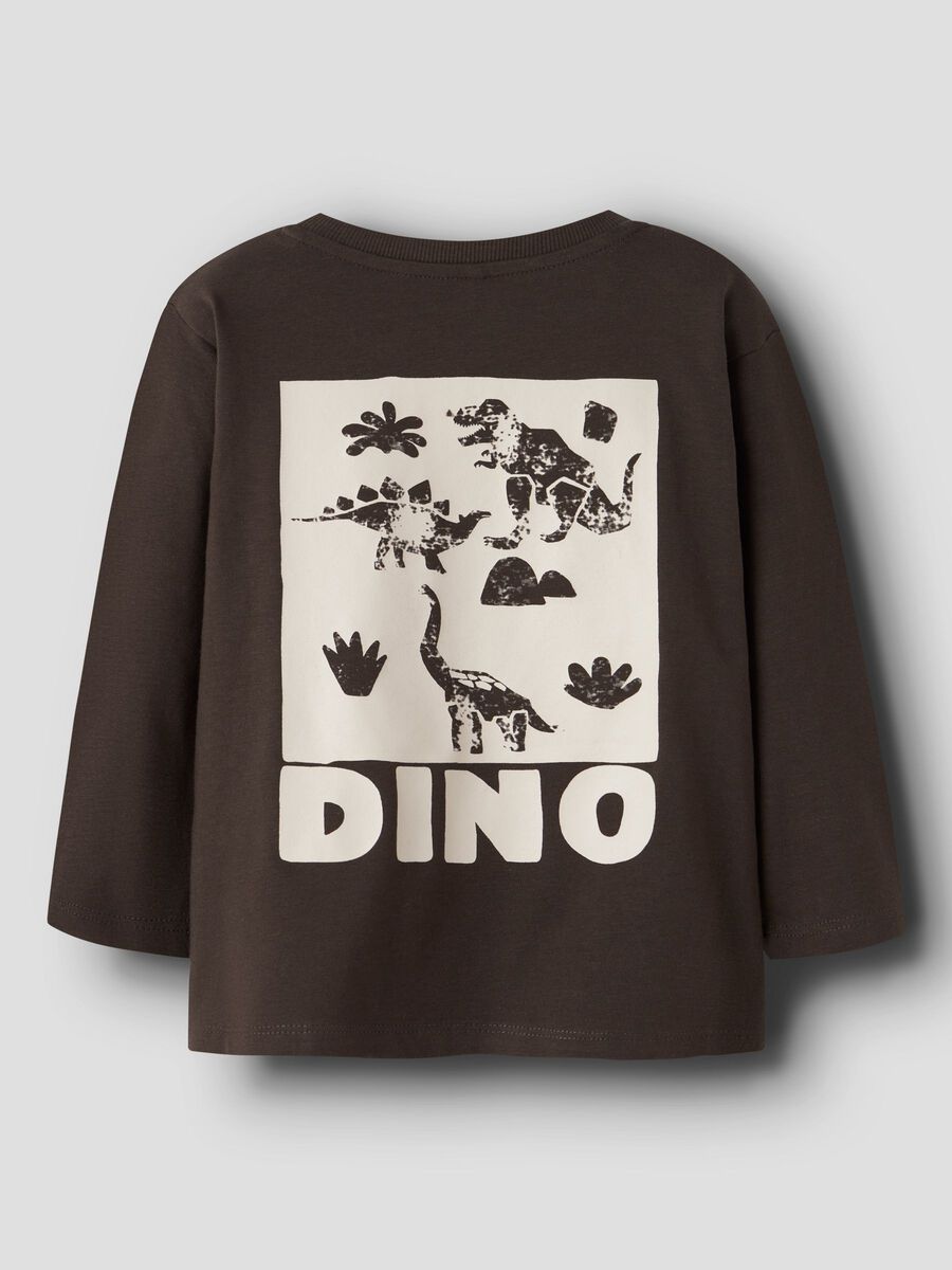 Μακρυμάνικη μπλούζα σε καφέ απόχρωση της εταιρείας Name it, με τύπωμα μπροστά και στη πλάτη, σε κανονική γραμμή και στρογγυλή λαιμόκοψη.