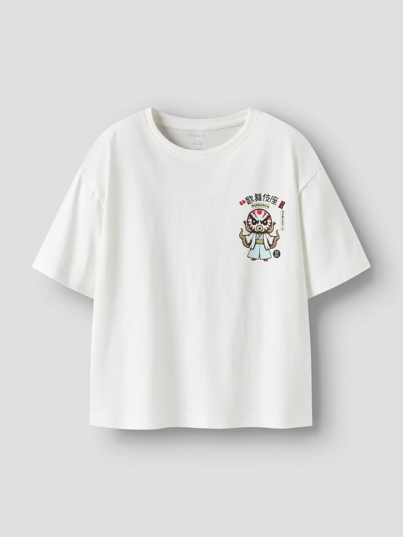 Κοντομάνικη μπλούζα σε λευκή απόχρωση της εταιρείας Name it, με τύπωμα στη πλάτη, σε κανονική εφαρμογή,