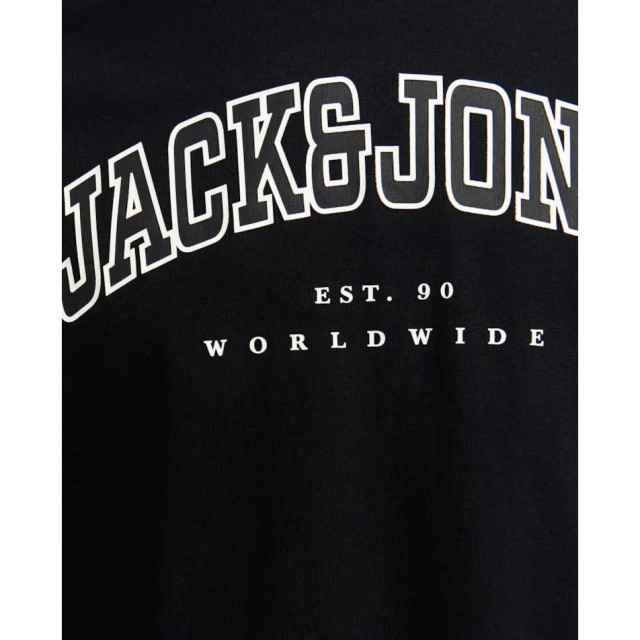 Μπλούζα σε μαύρη απόχρωση της εταιρείας Jack and Jones, τύπωμα στο στήθος, κανονική εφαρμογή.