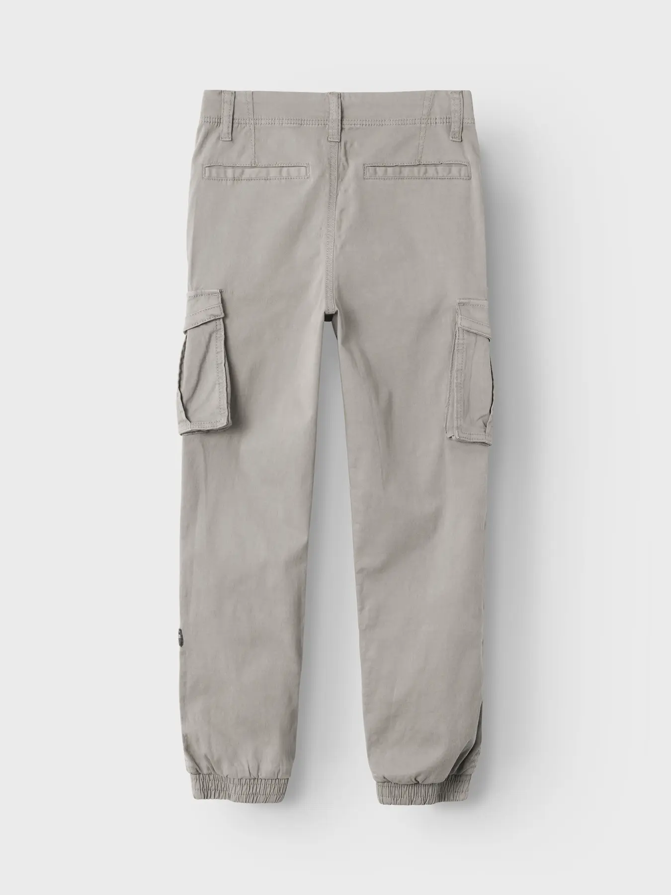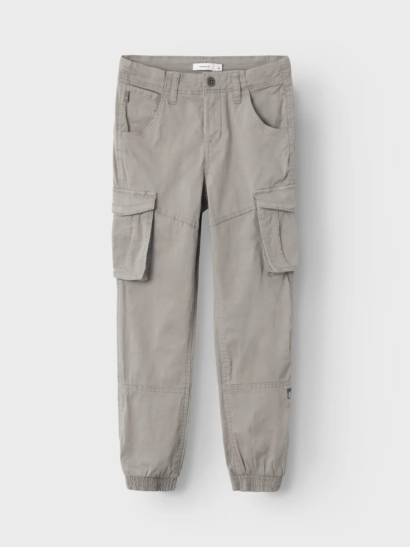 Παντελόνι Cargo σε γκρι απόχρωση της εταιρείας Name it, ρυθμιζόμενη ελαστική μέση, λειτουργικές πλαϊνές τσέπες.