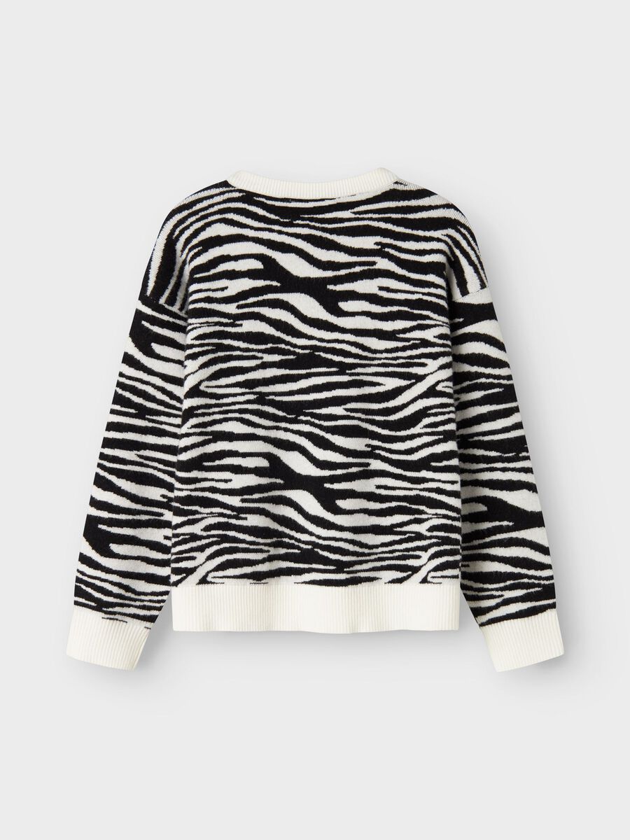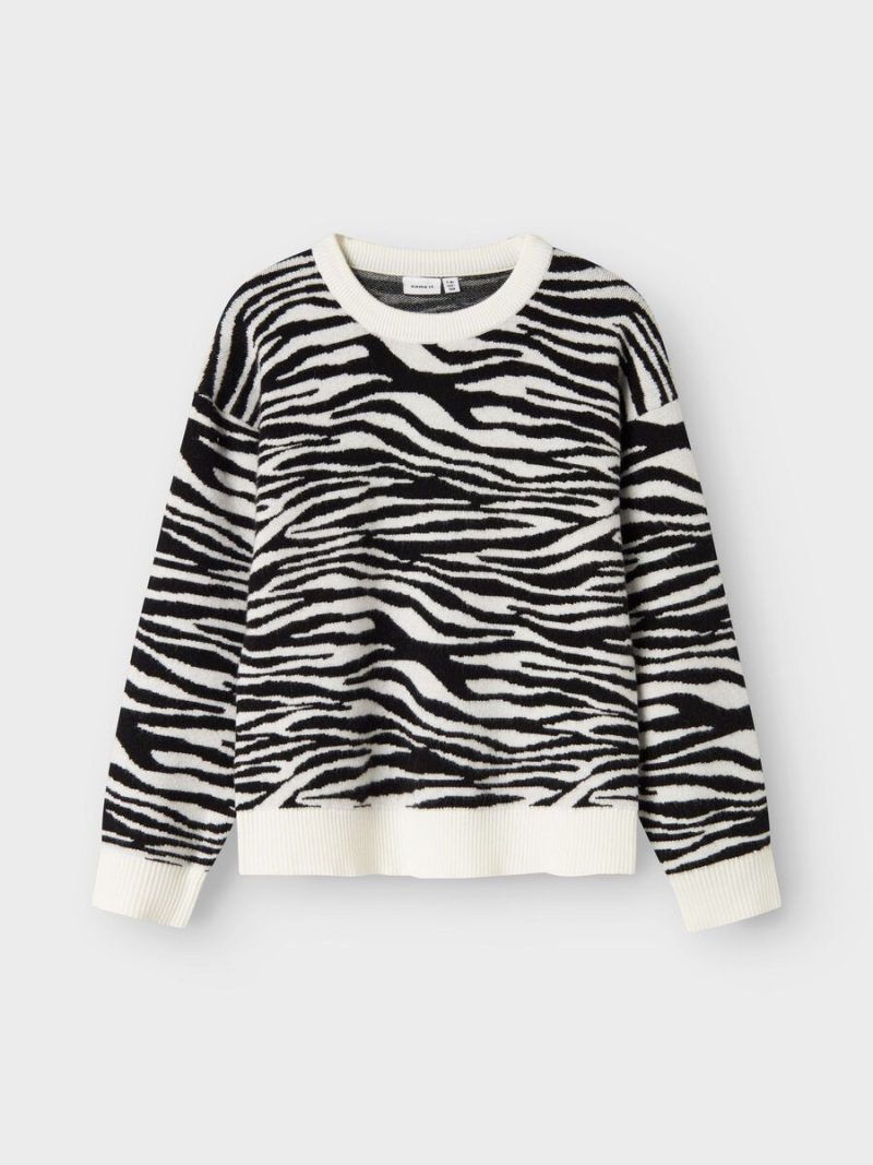 Πουλόβερ σε μαύρη Ζέβρα απόχρωση της εταιρείας Name it, σε κανονική γραμμή, γράμματα σε όλη την επιφάνεια, στρογγυλή λαιμόκοψη.