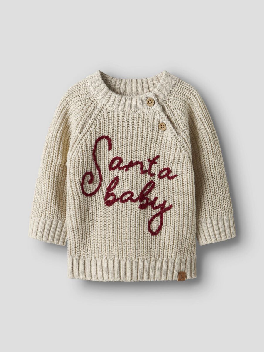 Πουλόβερ σε μπεζ απόχρωση της εταιρείας Lil’ Atelier, ραμμένο τύπωμα Santa στο στήθος, κανονική εφαρμογή.
