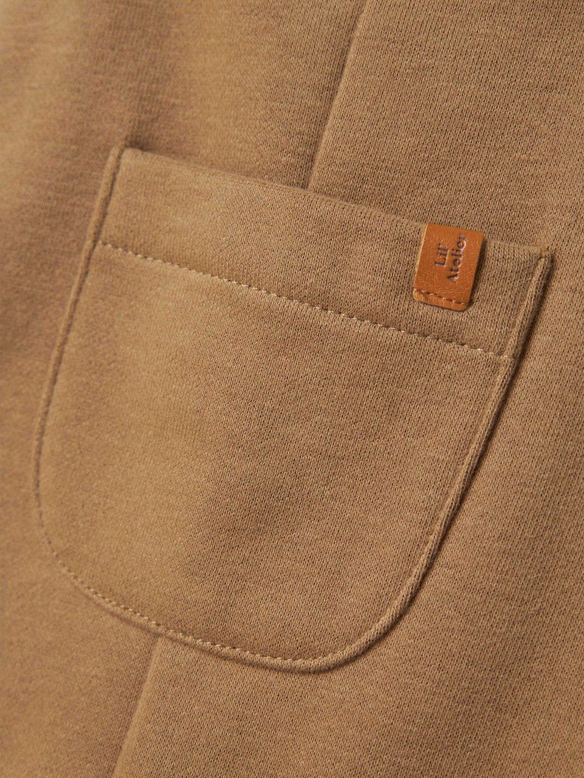 Σαλοπέτα σε καφέ απόχρωση της εταιρείας Lil’ Atelier, κανονική γραμμή, μπροστινή τσέπη, κούμπωμα με τρουκ, ζέρσεϊ ύφασμα.