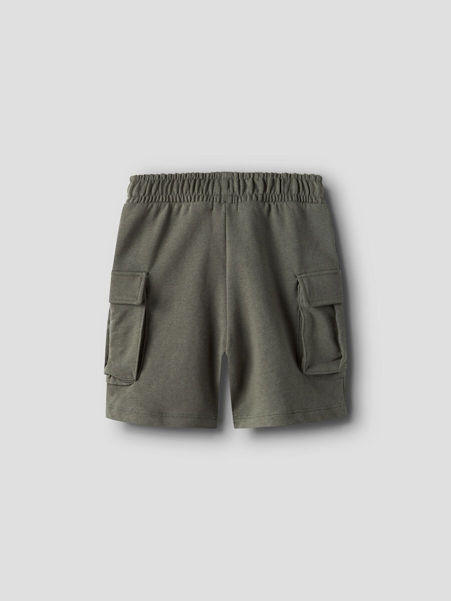 Σορτς σε χακί απόχρωση της εταιρείας Name it, cargo στυλ, λειτουργικές τσέπες στο πλάι, ελαστική ρυθμιζόμενη μέση.