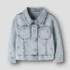 Τζιν μπουφάν σε ροζ απόχρωση της εταιρείας Name it, κλασικός γιακάς, μακρυμάνικο, κλείνει με κουμπιά μπροστά, κανονική γραμμή.