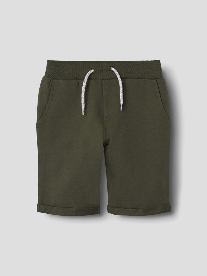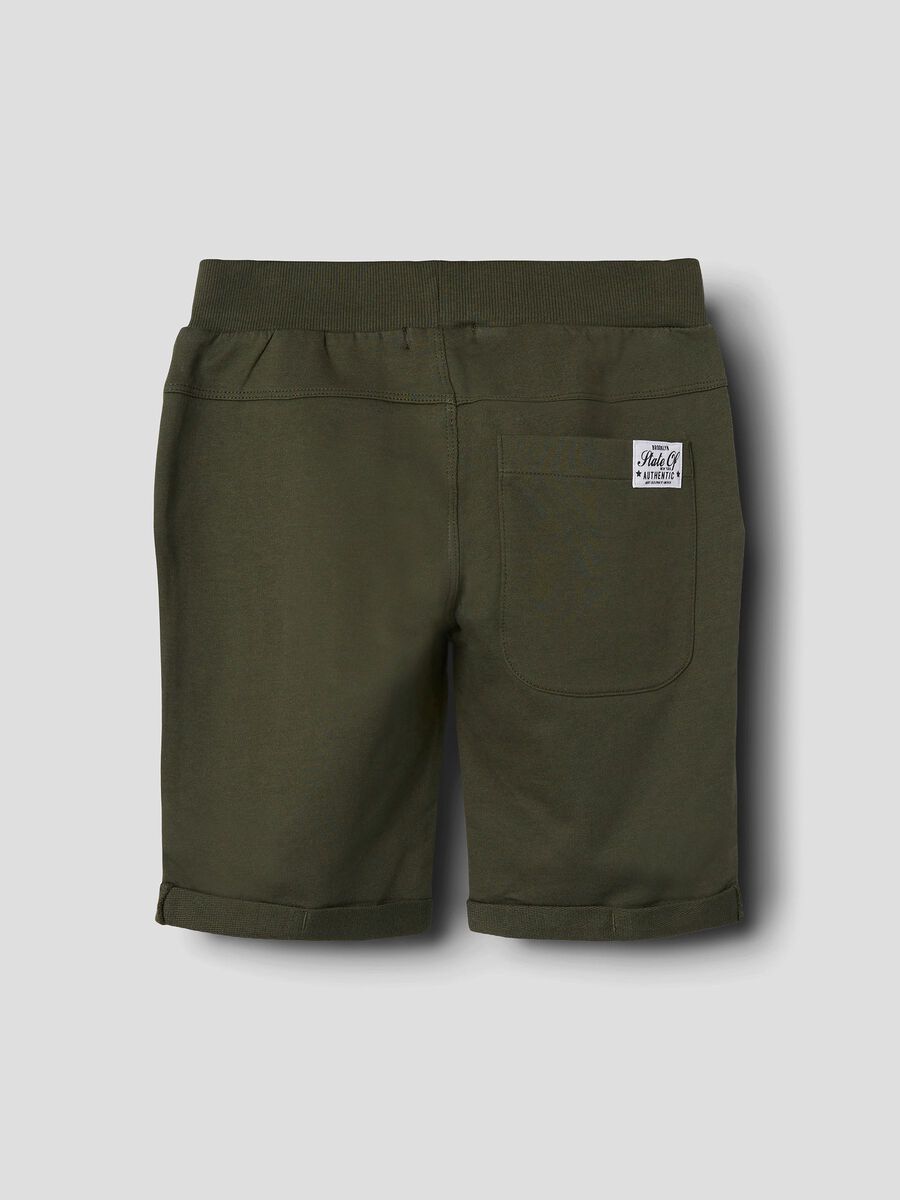 Βαμβακερό σε χακί απόχρωση της εταιρείας Name it, ρυθμιζόμενη ελαστική μέση, λειτουργικές πλαϊνές τσέπες.